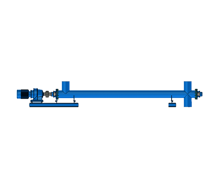 當螺旋軸轉動時,由于物料的重力及其與槽體壁所產生的摩擦力,使物料只能在葉片的推送下沿著輸送機的槽底向前移動,其情況好像不能旋轉的螺母沿著旋轉的螺桿作平移運動一樣。物料在中間軸承的運移,則是依靠后面前進著的物料的推力。所以,物料在輸送機中的運送,完全是一種滑移運動。為了使螺旋軸處于較為有利的受拉狀態,一般都將驅動裝置和卸料口安放在輸送機的同一端,而把進料口盡量放在另一端的尾部附近。 旋轉的螺旋葉片將物料推移而進行輸送,使物料不與螺旋輸送機葉片一起旋轉的力是物料自身重量和螺旋輸送機機殼對物料的摩擦阻力。葉片的面型根據輸送物料的不同有實體面型、帶式面型、葉片面型等型式。螺旋輸送機的螺旋軸在物料運動方向的終端有止推軸承以隨物料給螺旋的軸向反力,在機長較長時,應加中間吊掛軸承。